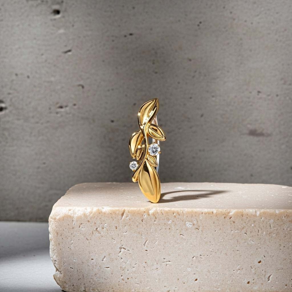 El adorno frontal con forma de rama y hojas ofrece un diseño inspirado en la naturaleza, delicado y equilibrado. Las dos circonitas de cristal añaden un toque de luminosidad que realza la pieza y le aporta un acabado refinado y lleno de encanto.